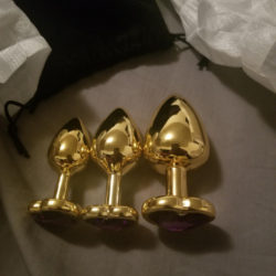 Each jeweled gold princess plug set has three anal toys in different sizes and base colors, making these tools perfect for total anal bliss training. Made of metal, we can assure you that these pleasure toys are easy to glide. Furthermore, the material adds weight to your backdoor training for a more wondrous feel.