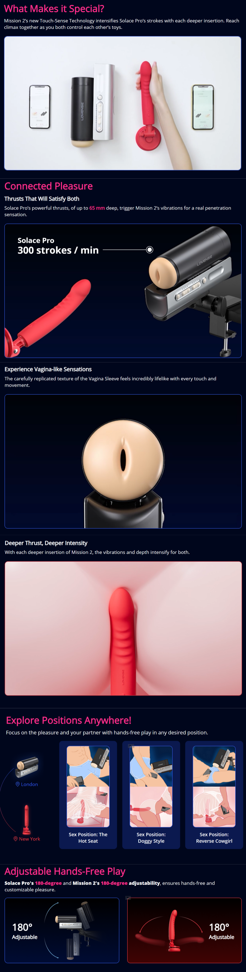 When paired via the Lovense Remote App, Solace Pro and Mission 2 respond to each other in real time. Adjusting intensity, rhythm, or patterns on one device instantly affects the other, creating a dynamic feedback loop where both partners feel connected and in control — no matter the distance.